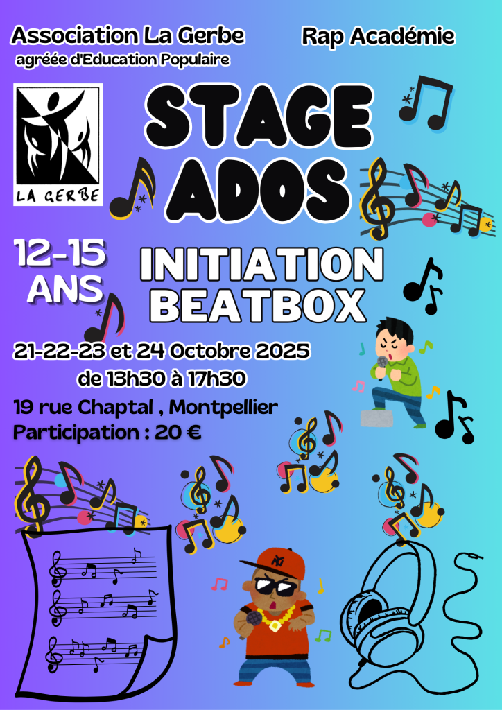 Ouvert aux enfants curieux et créatifs, ce stage leur permettra de découvrir l’art du beatbox à travers des jeux rythmiques, des exercices ludiques et des créations collectives.